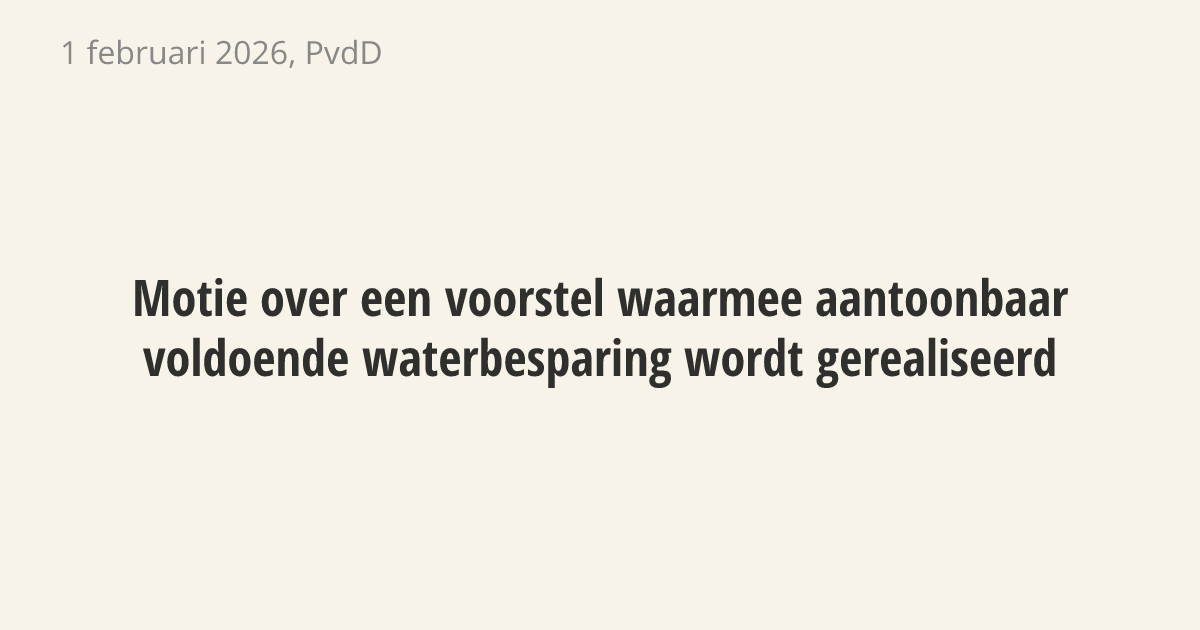 De regering moet voor de zomer van 2024 met plannen komen om water te besparen. Bedrijven gebruiken namelijk steeds meer kraanwater, waardoor er te weinig water beschikbaar is voor de bouw van nieuwe woningen. De regering moet onderzoeken of zij grote bedrijven kunnen verplichten om minder water te verbruiken via de wet of via strengere regels in vergunningen.
