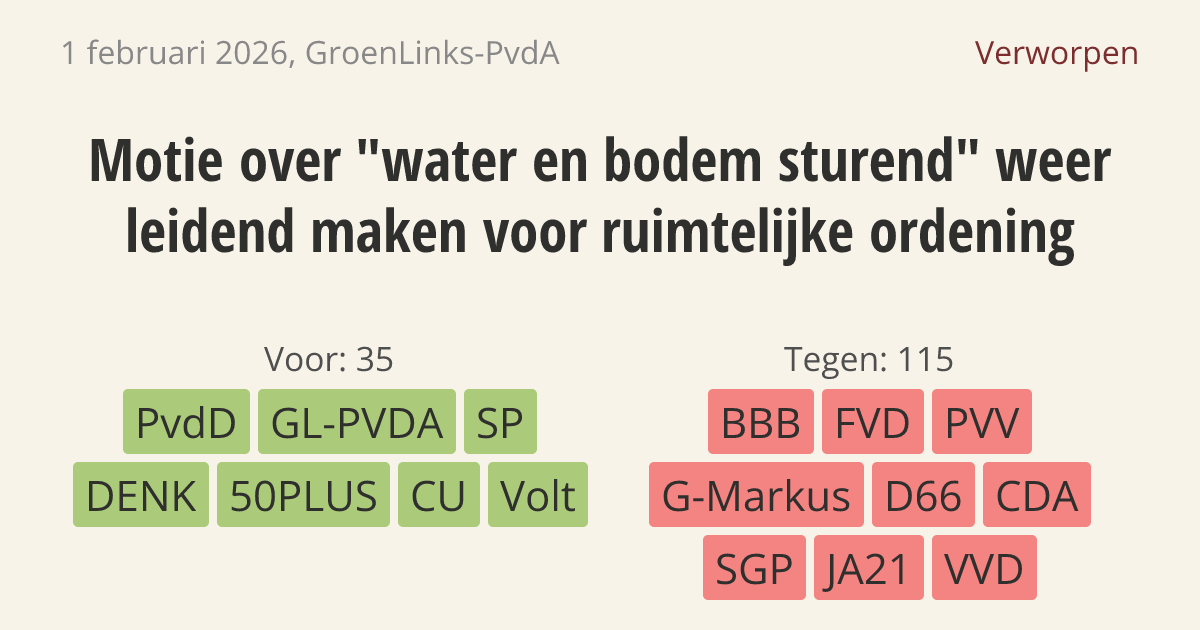 Motie van het lid Bromet over "water en bodem sturend" weer leidend maken voor ruimtelijke ordening