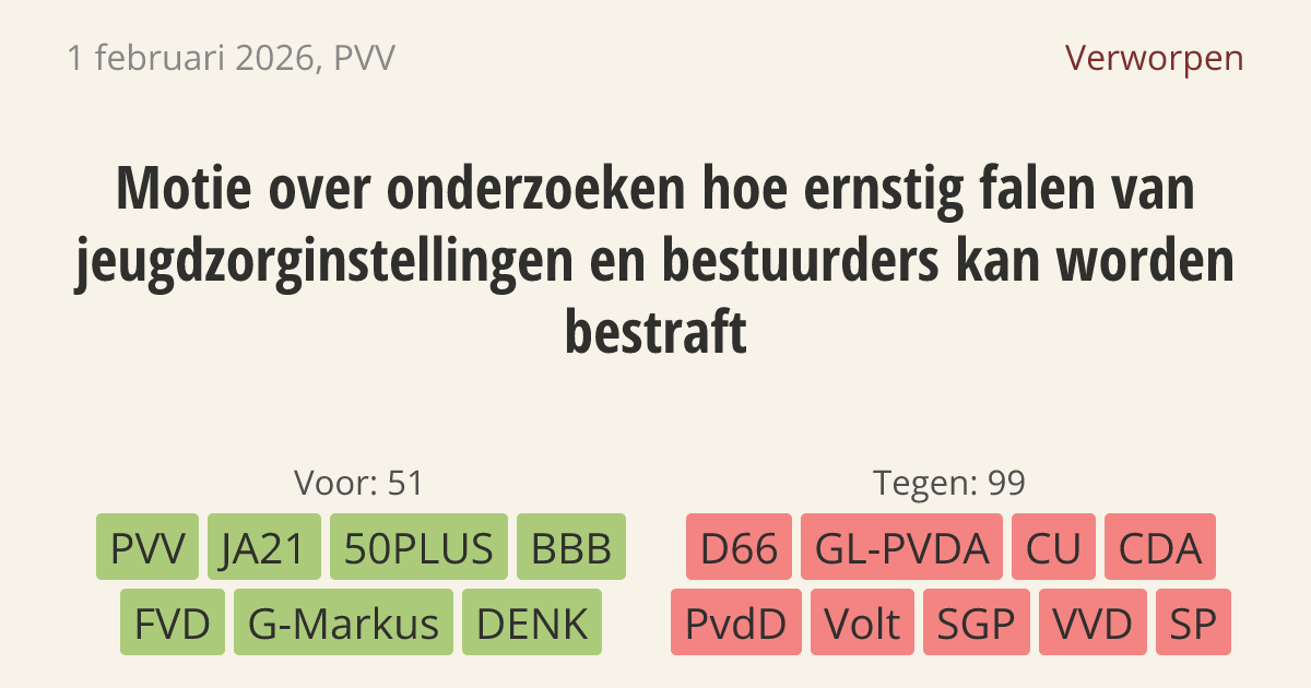 Motie van het lid Van Meetelen over onderzoeken hoe ernstig falen van jeugdzorginstellingen en bestuurders kan worden bestraft