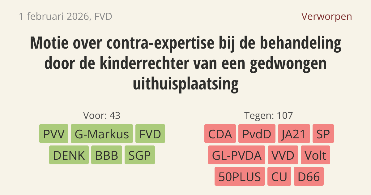 Motie van het lid Van Houwelingen over contra-expertise bij de behandeling door de kinderrechter van een gedwongen uithuisplaatsing