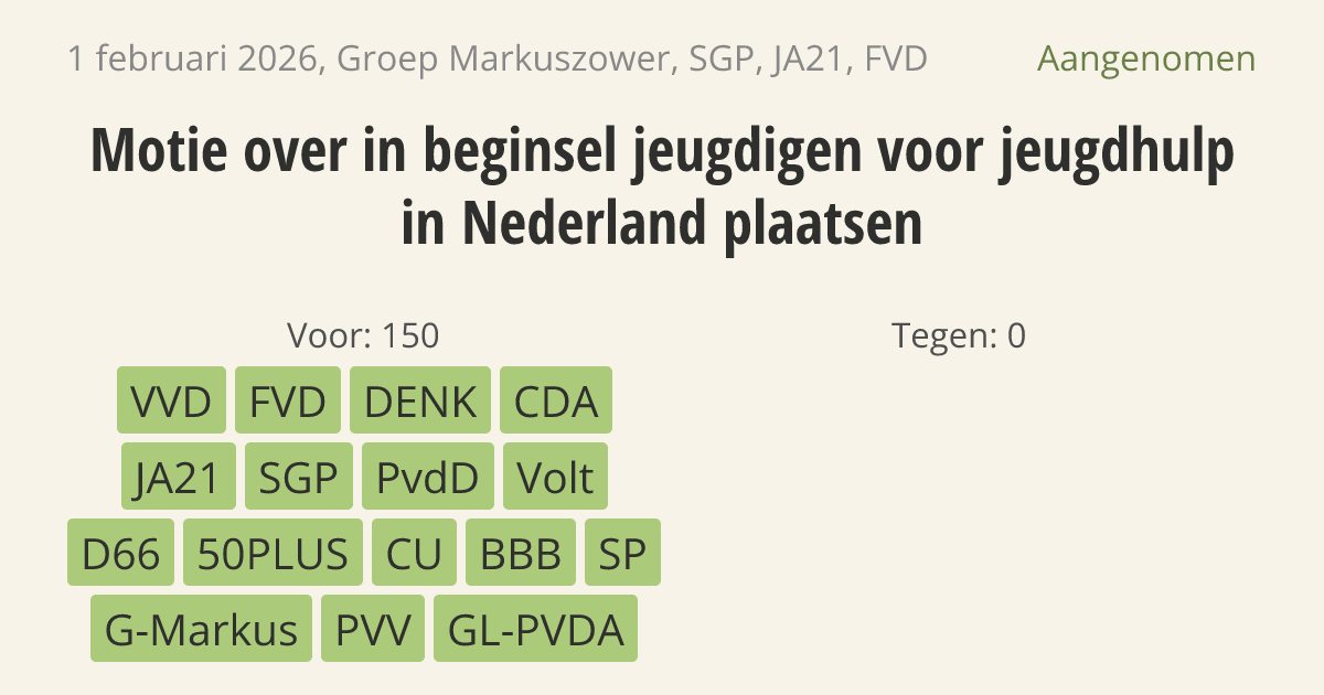 verzoekt de regering in beginsel jeugdigen in Nederland te plaatsen, tenzij