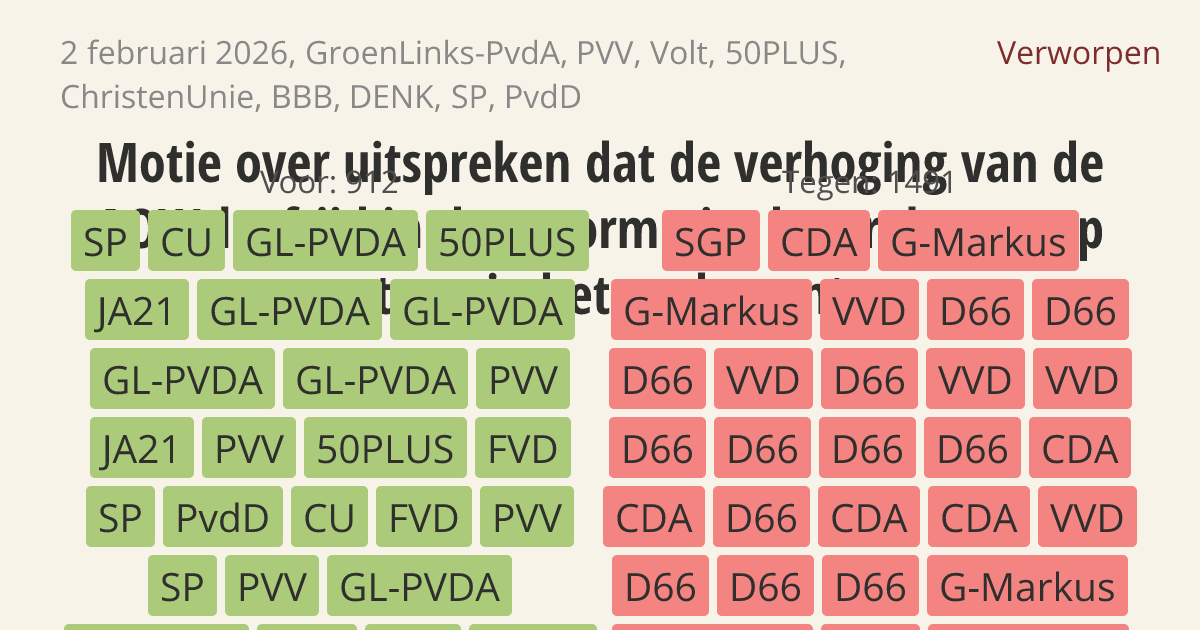 overwegende dat de coalitiepartijen in strijd met deze afspraak voorstellen