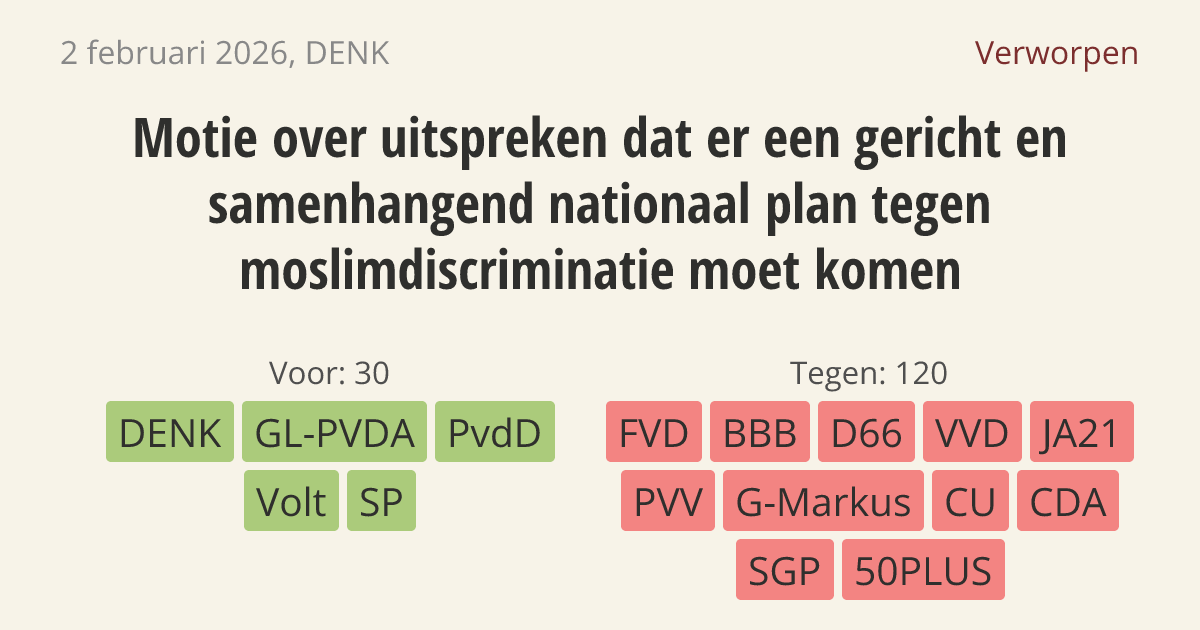 Verworpen op 3 februari: 30 - 120