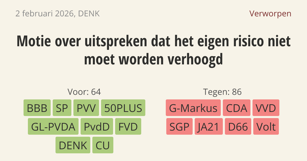 spreekt uit dat het eigen risico niet moet worden verhoogd.