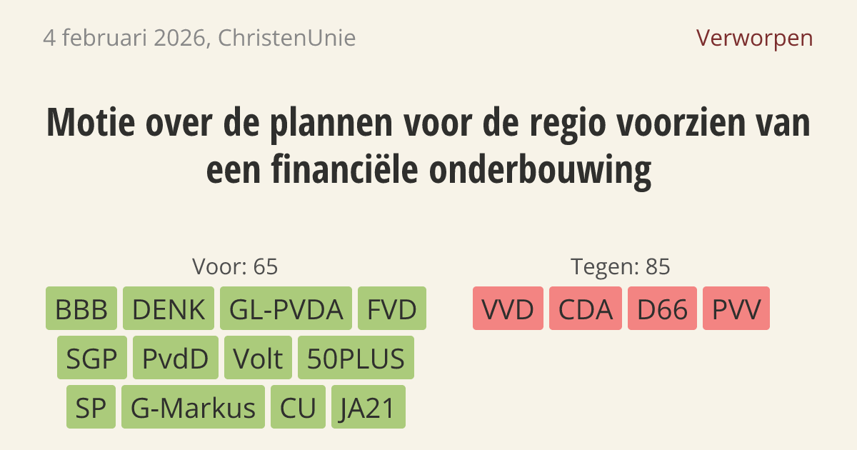 Motie van het lid Bikker over de plannen voor de regio voorzien van een financiële onderbouwing