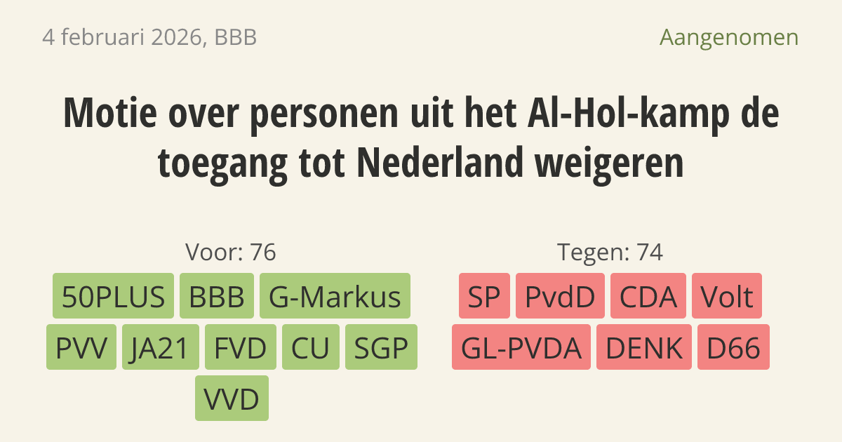 Aangenomen op 10 februari: 76 - 74