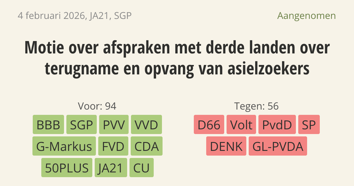 Aangenomen op 10 februari: 94 - 56