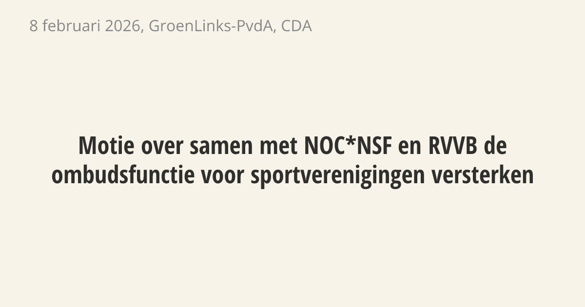 Motie van de leden Mohandis en Inge van Dijk over samen met NOC*NSF en RVVB de ombudsfunctie voor sportverenigingen versterken