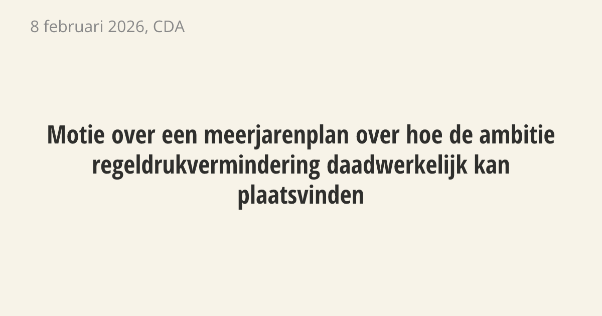 Motie van het lid Inge van Dijk over een meerjarenplan over hoe de ambitie regeldrukvermindering daadwerkelijk kan plaatsvinden