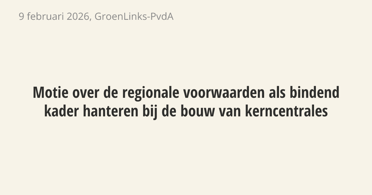 De regering moet de eisen van de gemeente Borsele, het dorp Biervliet en de provincie Zeeland volledig overnemen bij de bouw van nieuwe kerncentrales. Deze regionale voorwaarden moeten verplicht worden bij alle plannen en vergunningen. Dit is nodig om het vertrouwen van de inwoners te behouden en omdat steun vanuit de omgeving onmisbaar is bij dit soort grote projecten.