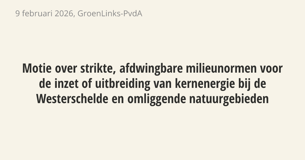 Motie van het lid Van Oosterhout over strikte, afdwingbare milieunormen voor de inzet of uitbreiding van kernenergie bij de Westerschelde en omliggende natuurgebieden