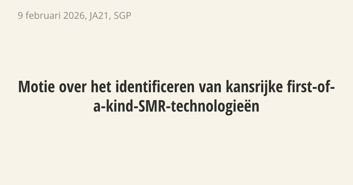 De regering moet plannen maken voor de bouw van kleine kernreactoren, ook wel SMR's genoemd. Deze nieuwe technologie is nodig voor de overstap naar schone energie. De regering moet geschikte locaties zoeken, bepalen hoe de vergunningen geregeld worden en onderzoeken wie de kosten en risico's draagt. Dit helpt om kennis op te bouwen en de kosten voor energie in de toekomst te verlagen.