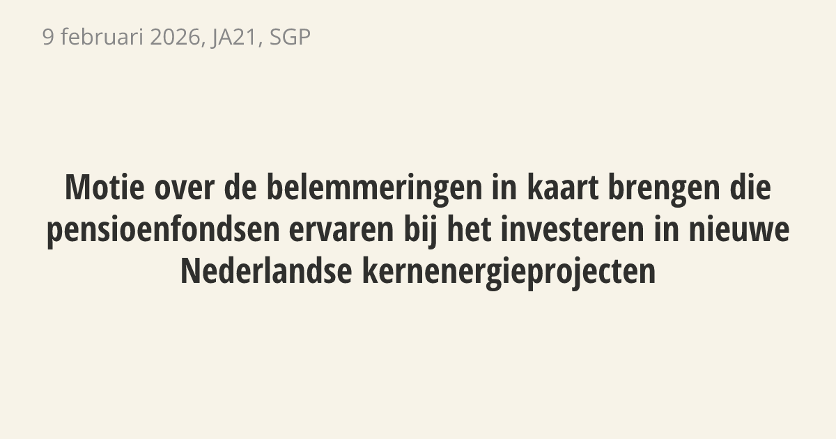 Motie van de leden Van den Berg en Flach over de belemmeringen in kaart brengen die pensioenfondsen ervaren bij het investeren in nieuwe Nederlandse kernenergieprojecten