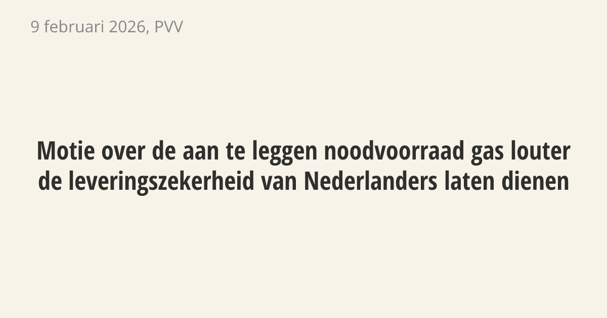 Motie van het lid Kops over de aan te leggen noodvoorraad gas louter de leveringszekerheid van Nederlanders laten dienen