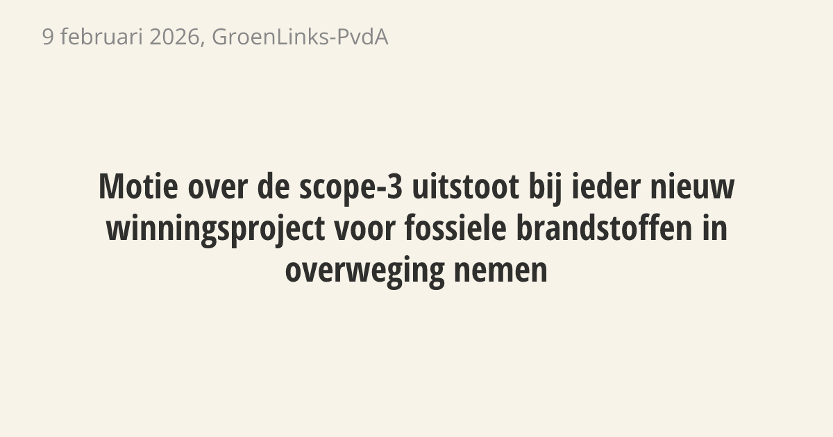 Motie van het lid Van Oosterhout over de scope-3 uitstoot bij ieder nieuw winningsproject voor fossiele brandstoffen in overweging nemen
