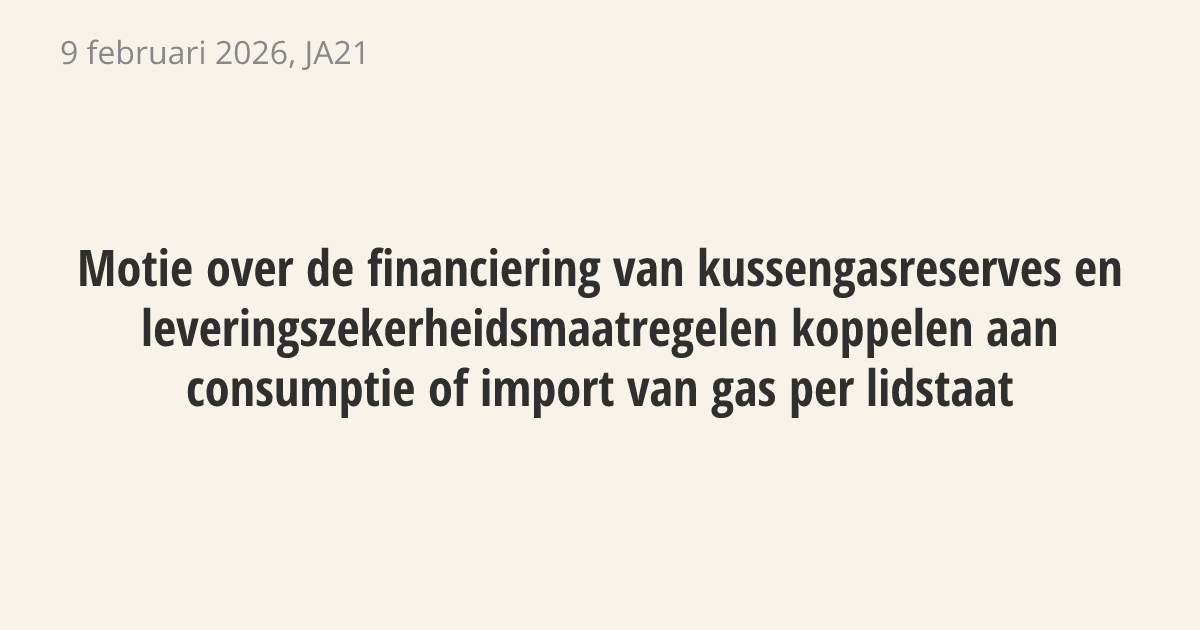 De regering moet in de Europese Unie voorstellen om de kosten voor gasreserves voortaan te verdelen op basis van hoeveel gas een land verbruikt of importeert. Op dit moment zijn de afspraken over de financiering van deze voorraden en de leveringszekerheid nog niet goed geregeld.