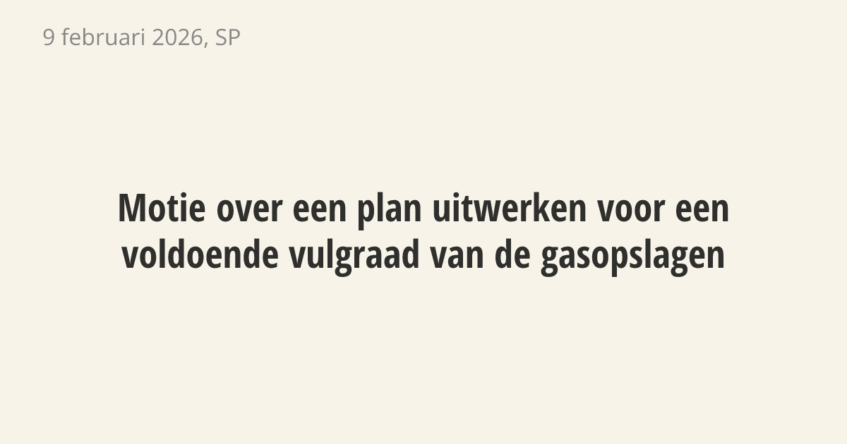 De regering moet een plan maken om de gasvoorraden volgend jaar op peil te houden. Hierbij moet ook gekeken worden naar het nationaliseren van gasopslagen. Op dit moment zijn de opslagen in private handen, waardoor de overheid te weinig grip heeft op de hoeveelheid beschikbaar gas.