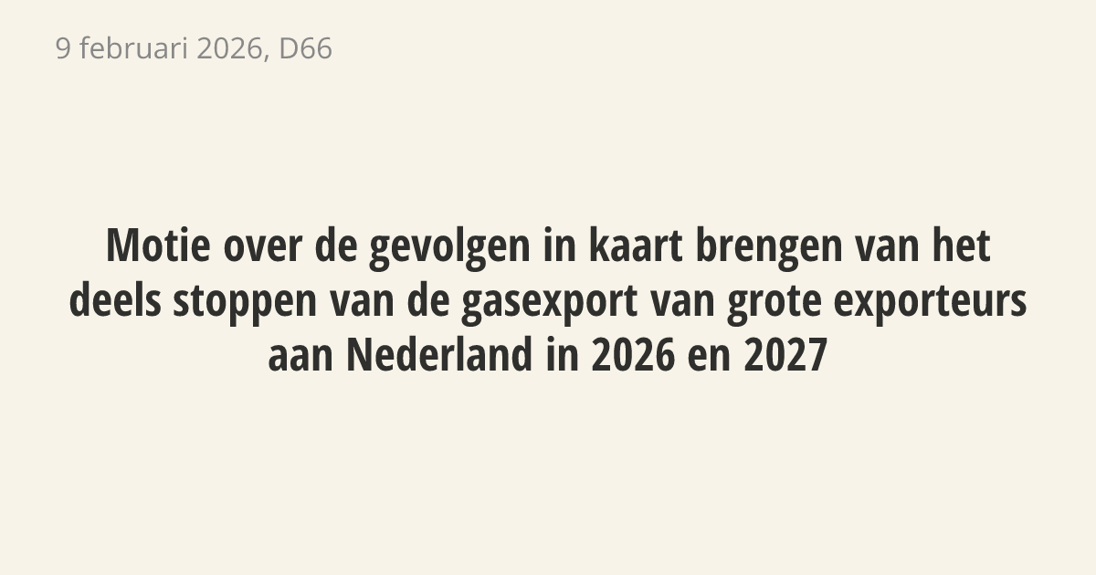 De regering moet laten uitzoeken wat er gebeurt als grote gasleveranciers stoppen met export naar Nederland in 2026 en 2027. Het is onduidelijk wat de gevolgen van zulke gastekorten zijn voor huishoudens en bedrijven. Door de onrust in de wereld en eerdere energiecrisissen is het belangrijk om scenario's klaar te hebben die onze economie en de portemonnee van burgers beschermen.