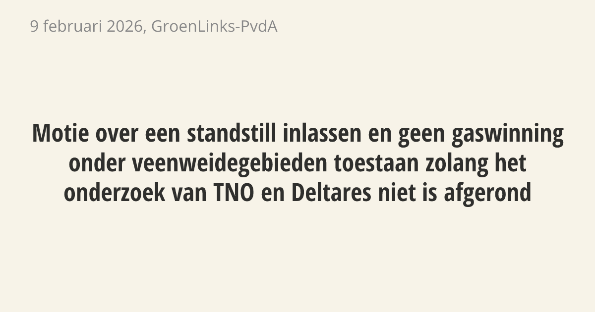 De regering mag geen nieuwe gaswinning toestaan onder veenweidegebieden zolang er nog onderzoek loopt. De bodem in deze gebieden is erg kwetsbaar. Gaswinning kan zorgen voor extra bodemdaling. Dit leidt tot hoge kosten voor het herstel van funderingen en wegen, en brengt schade toe aan de natuur en het klimaat.