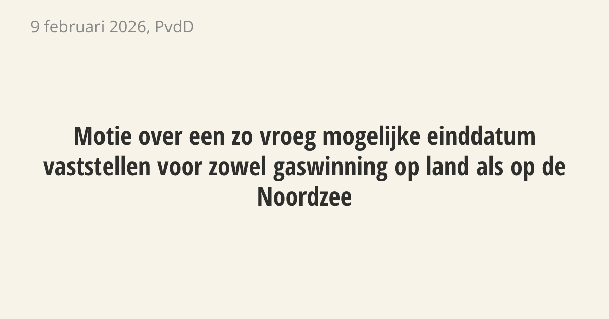 De regering moet zo snel mogelijk een einddatum bepalen voor het winnen van gas op land en in de Noordzee. Nederland heeft beloofd de opwarming van de aarde te beperken tot 1,5 graad. Gaswinning zorgt voor te veel uitstoot van CO2 en houdt het gebruik van vervuilende energie te lang in stand.
