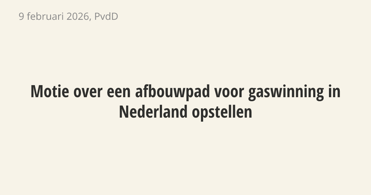 De regering moet een plan maken om stap voor stap te stoppen met gaswinning. Nieuwe investeringen in gas zorgen ervoor dat Nederland te lang afhankelijk blijft van fossiele brandstoffen. Hierdoor worden de klimaatdoelen niet gehaald. Er moeten plannen komen voor energiebesparing en duurzame opwekking van energie, zodat Nederland ook zonder gas genoeg eigen energie heeft.