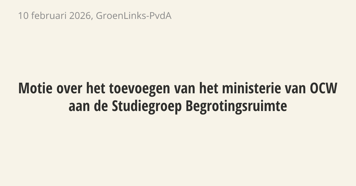 De regering moet het ministerie van Onderwijs, Cultuur en Wetenschap (OCW) toevoegen aan de Studiegroep Begrotingsruimte. Deze groep adviseert over de rijksbegroting. Onderwijs is niet alleen een kostenpost, maar een investering die zorgt voor meer economische groei en kansengelijkheid. Daarom moet dit belang zwaarder meewegen bij besluiten over geld.