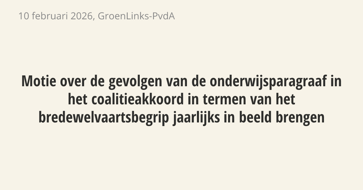Motie van het lid Moorman over de gevolgen van de onderwijsparagraaf in het coalitieakkoord in termen van het bredewelvaartsbegrip jaarlijks in beeld brengen