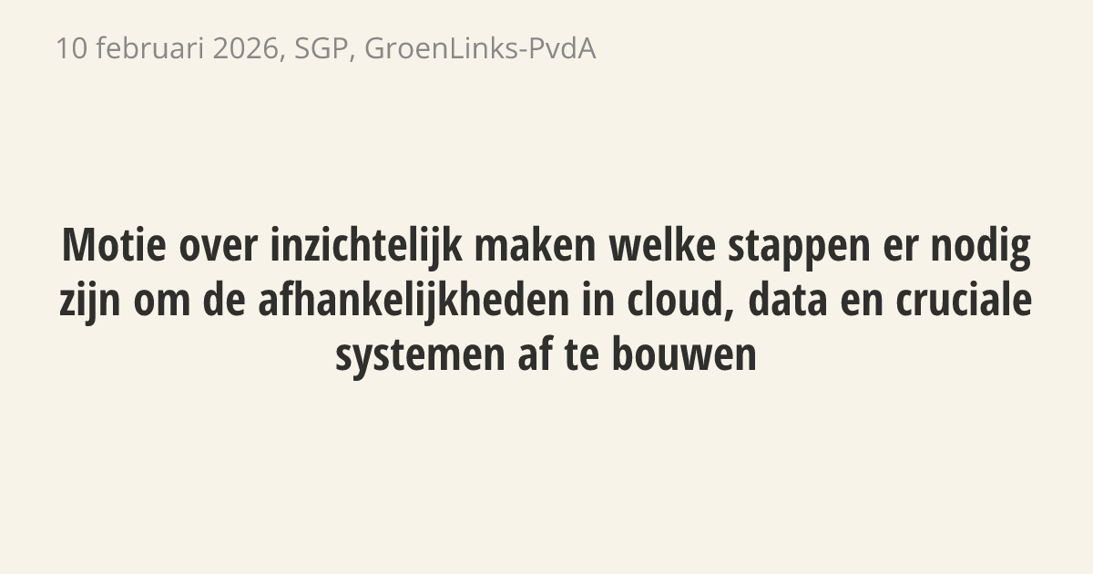 De regering moet een plan maken om de afhankelijkheid van buitenlandse aanbieders van cloud, data en kritieke systemen te verminderen. Ook moet de regering onderzoeken hoe zij hier vanaf 2027 structureel geld voor vrij kan maken. Digitale onafhankelijkheid is een belangrijk doel voor de overheid, maar op dit moment ontbreken de nodige financiƫle middelen.