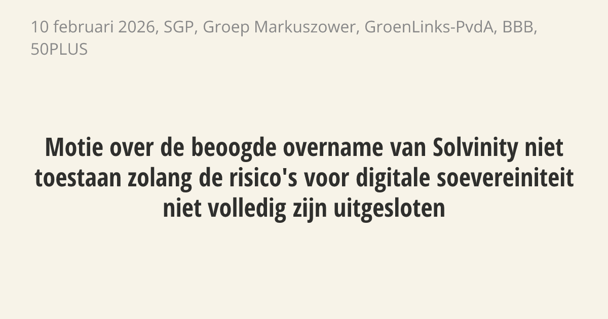 verzoekt de regering de beoogde overname van Solvinity in het licht van