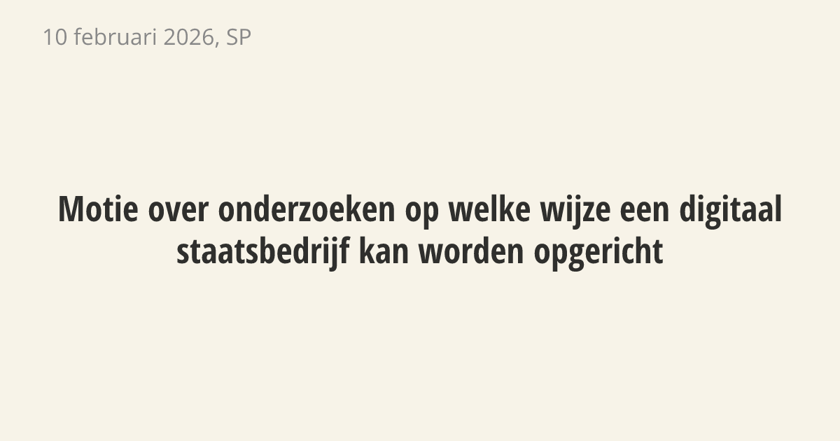 De regering moet onderzoeken hoe een digitaal staatsbedrijf kan worden opgericht. De Nederlandse overheid is nu te afhankelijk van grote techbedrijven. Omdat digitale infrastructuur onmisbaar is voor het land, moet de overheid dit zien als een eigen publieke taak.