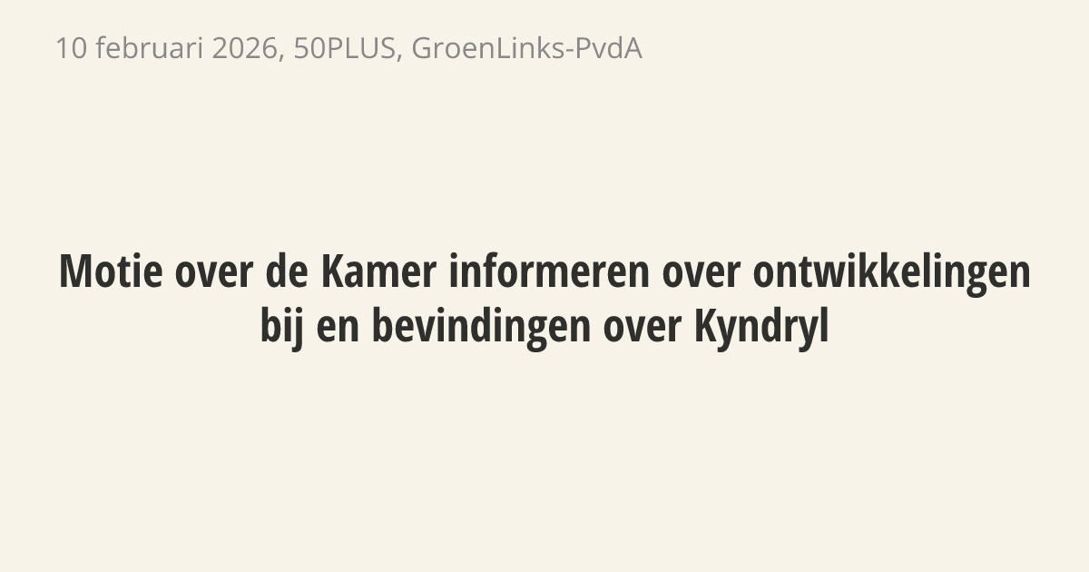 De regering moet de Kamer snel informeren over de geplande overname van ICT-bedrijf Solvinity door het Amerikaanse Kyndryl. Er loopt een onderzoek naar mogelijke fraude en slechte cijfers bij Kyndryl. Dit brengt risico's mee voor de stabiliteit en veiligheid van belangrijke digitale diensten van de overheid, zoals DigiD en MijnOverheid.