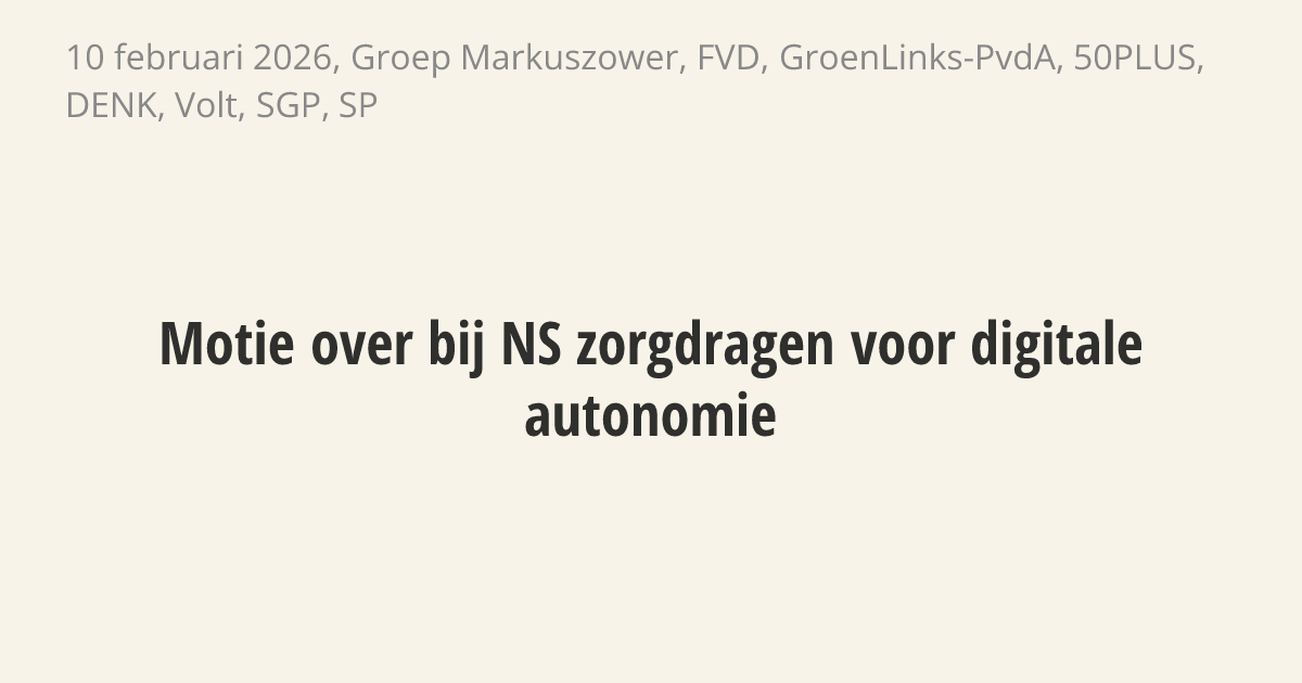 De regering moet ervoor zorgen dat de ICT-systemen van de Nederlandse Spoorwegen op Nederlandse of Europese bodem blijven. De NS wil onderdelen van de digitale planning en werkplaatsen onderbrengen bij een Amerikaans bedrijf. Dit gaat in tegen de wens van Nederland en Europa om niet afhankelijk te zijn van landen buiten Europa voor belangrijke digitale diensten.