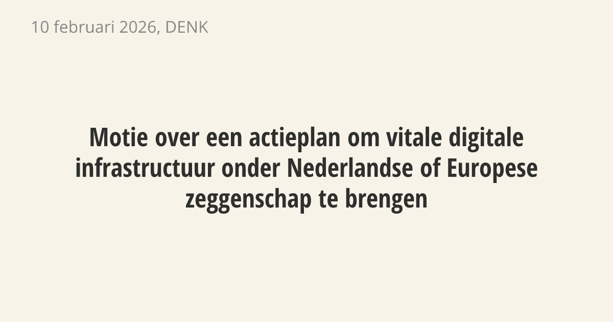 De regering moet een actieplan maken om de digitale infrastructuur onder Nederlandse of Europese controle te brengen. Op dit moment is de overheid te afhankelijk van Amerikaanse cloudbedrijven. De vitale infrastructuur moet veilig blijven en mag niet afhankelijk zijn van andere landen.