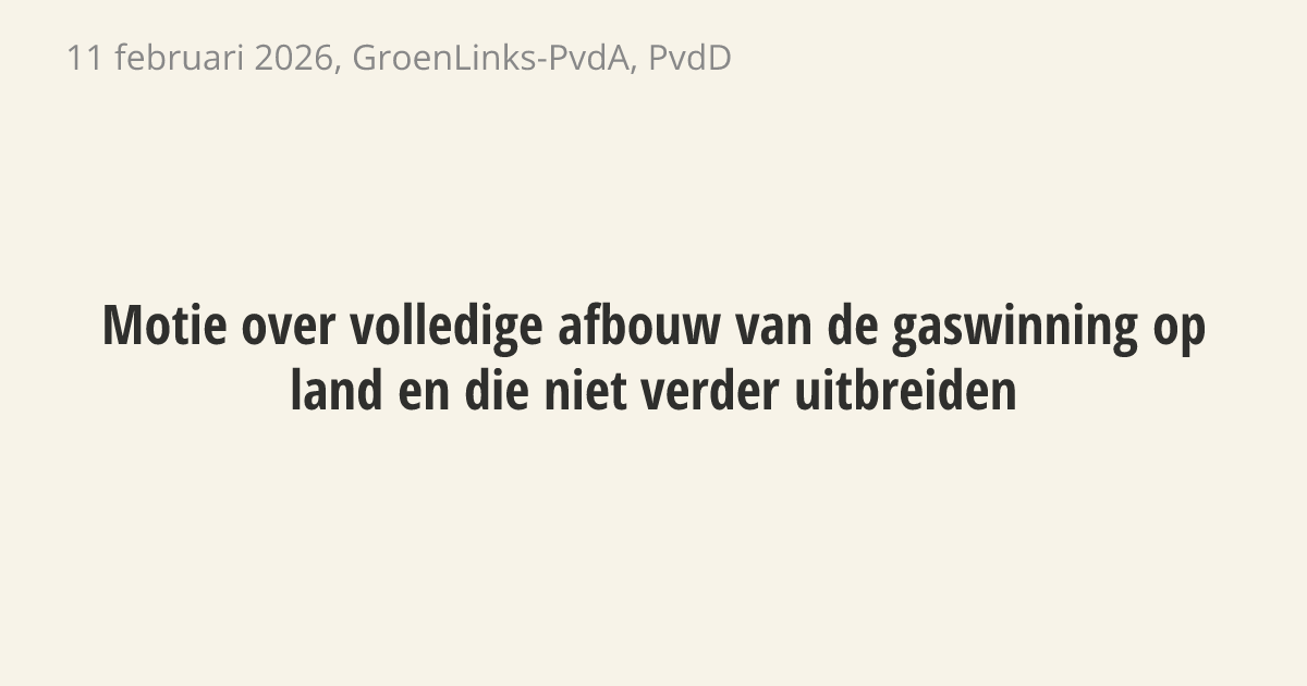 De regering moet de gaswinning op land volledig afbouwen en mag deze niet meer uitbreiden. Gaswinning veroorzaakt gevaren voor omwonenden, zoals bodemdaling en aardbevingen. Daarnaast is het winnen van gas slecht voor de klimaatdoelen en is er geen steun voor bij lokale bewoners en bestuurders.