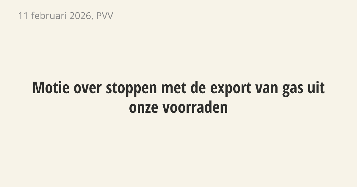 verzoekt de regering de export van gas uit onze voorraden te stoppen.