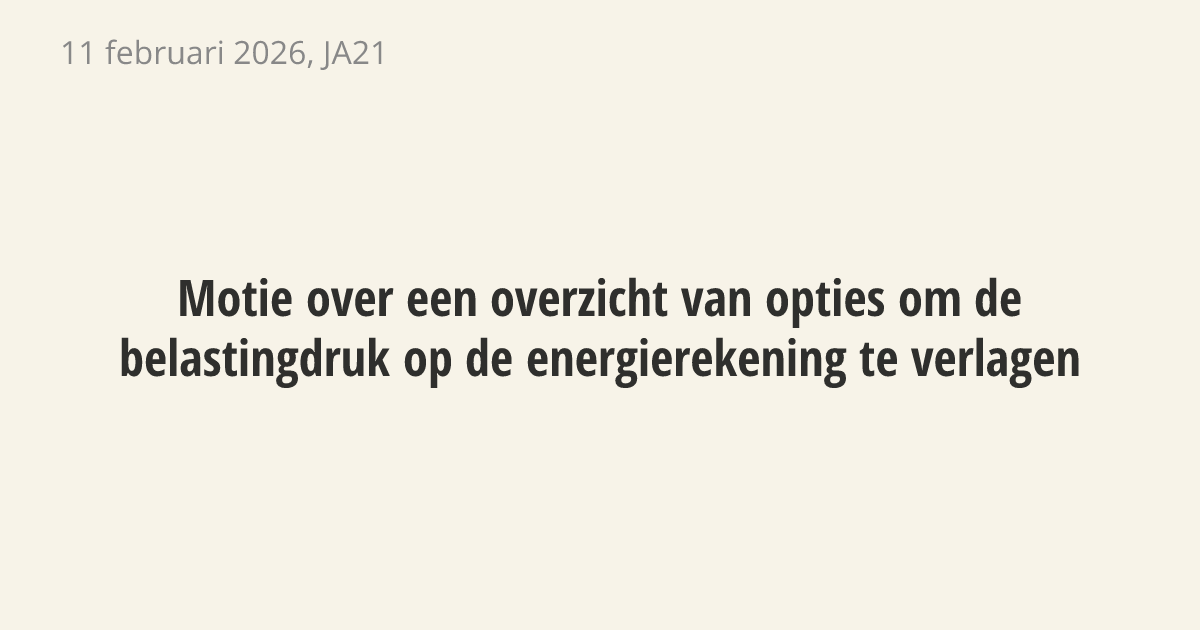 Voorjaarsnota 2026 een overzicht te sturen van opties om de belastingdruk op de energierekening te verlagen, waaronder energiebelasting,