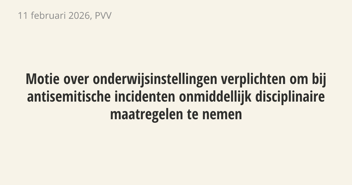 Motie van het lid Raijer over onderwijsinstellingen verplichten om bij antisemitische incidenten onmiddellijk disciplinaire maatregelen te nemen
