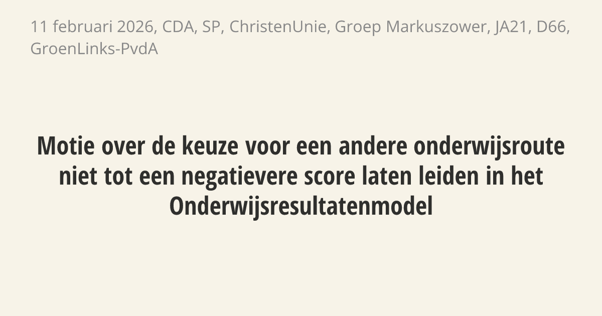 Motie van het lid Armut c.s. over de keuze voor een andere onderwijsroute niet tot een negatievere score laten leiden in het Onderwijsresultatenmodel