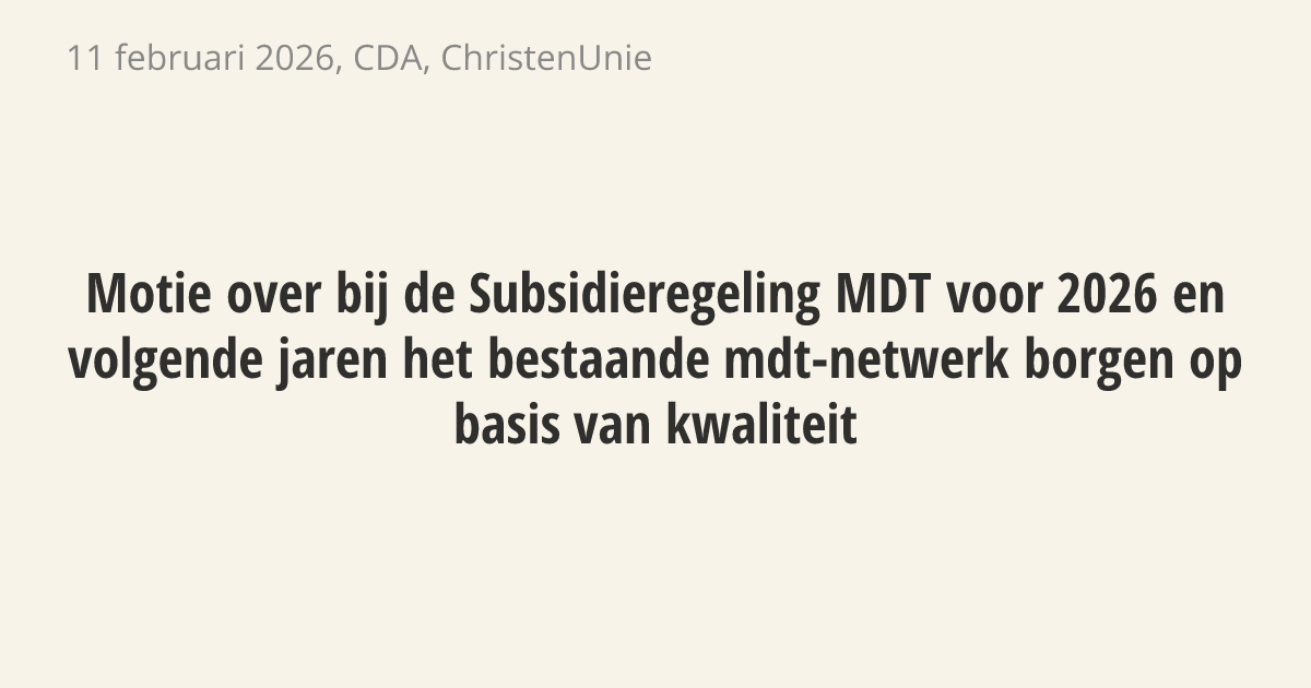 Motie van de leden Armut en Ceder over bij de Subsidieregeling MDT voor 2026 en volgende jaren het bestaande mdt-netwerk borgen op basis van kwaliteit