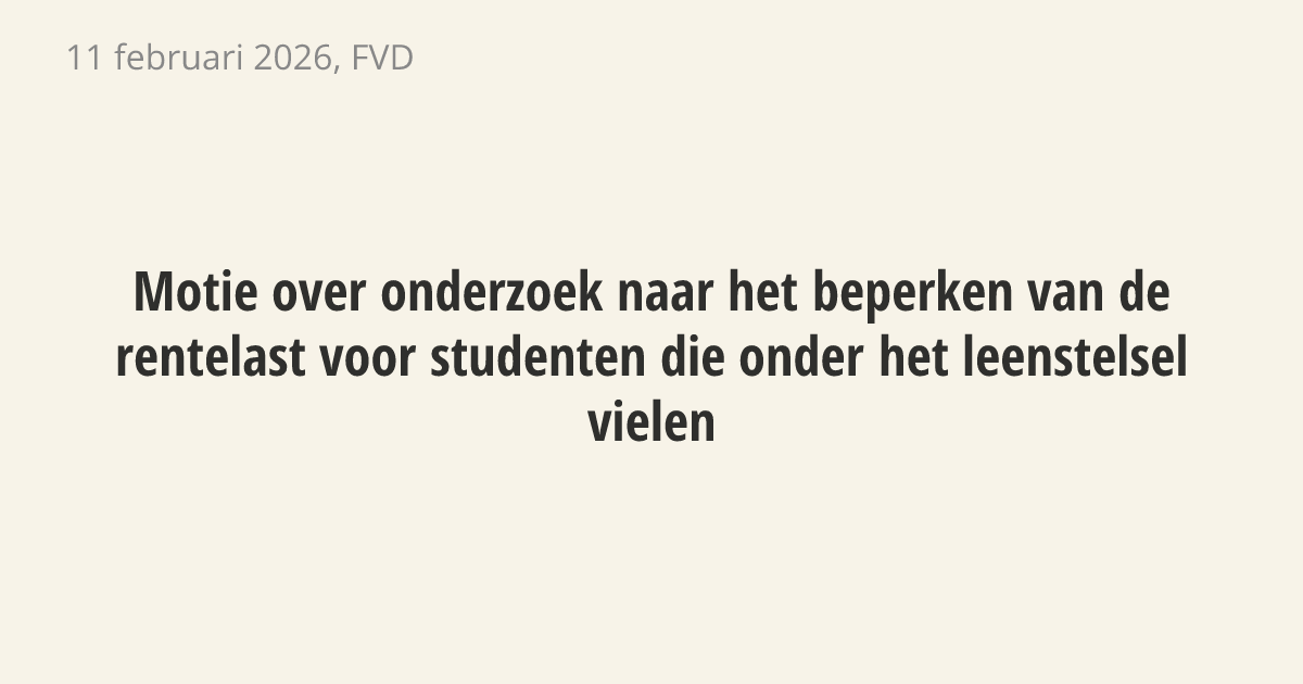 De regering moet onderzoeken hoe zij de rente op studieschulden van de leenstelselgeneratie blijvend kan verlagen, bijvoorbeeld naar 0%. Deze groep studenten kon geen basisbeurs krijgen en heeft daardoor hoge schulden. Bij de start van het leenstelsel was de rente erg laag, maar de laatste jaren is deze flink gestegen. Dit zorgt voor onvoorziene financiële problemen.