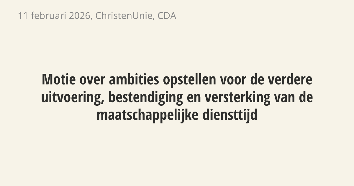 versterking van maatschappelijke diensttijd op te stellen, en de Kamer hier