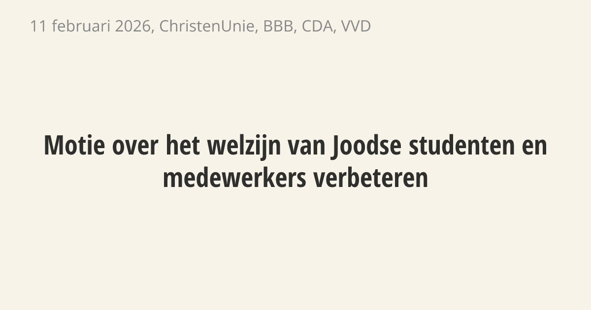 De regering moet samen met onderwijsorganisaties en Joodse experts zorgen voor betere geestelijke hulp op hogescholen en universiteiten. De sociale veiligheid van Joodse studenten en medewerkers staat onder druk. Er is daarom meer behoefte aan passende ondersteuning, zoals gesprekken met een studentenrabbijn of andere vormen van pastorale zorg.