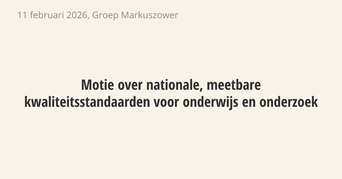 Motie van het lid Claassen over nationale, meetbare kwaliteitsstandaarden voor onderwijs en onderzoek